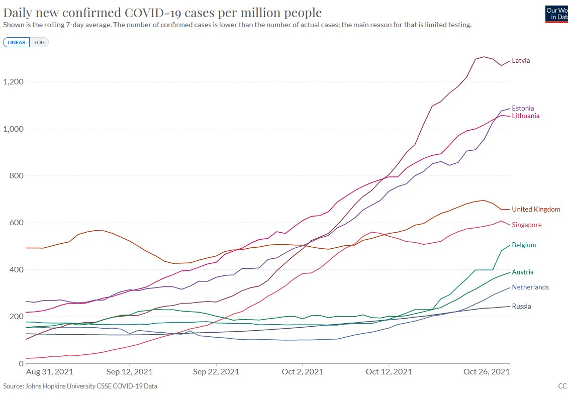 Заражаются и заражают других люди с вакцинами так же, как и те, что вакцинироваться не стали. В больницах 30% с вакцинами. Риск оказаться в больнице для вакцинированного человека примерно в 2,5 раза ниже (60% вакцинированы). В масштабах страны это слишком мало и неминуемо ведёт к локдауну.