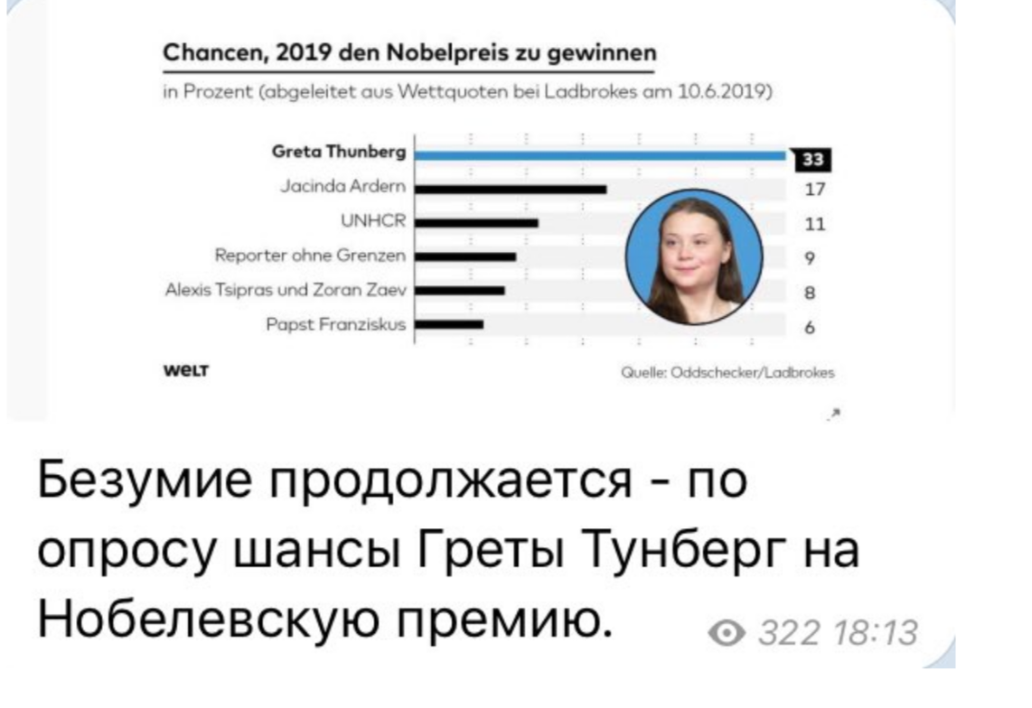 Ну и Грета - чистый пиар-проект, в своей эмоциональной речи об украденном детстве и мечтах, к слову глобальное изменение климата началось задолго до ее рождения, выдает ровно то, что ей сказали сказать.