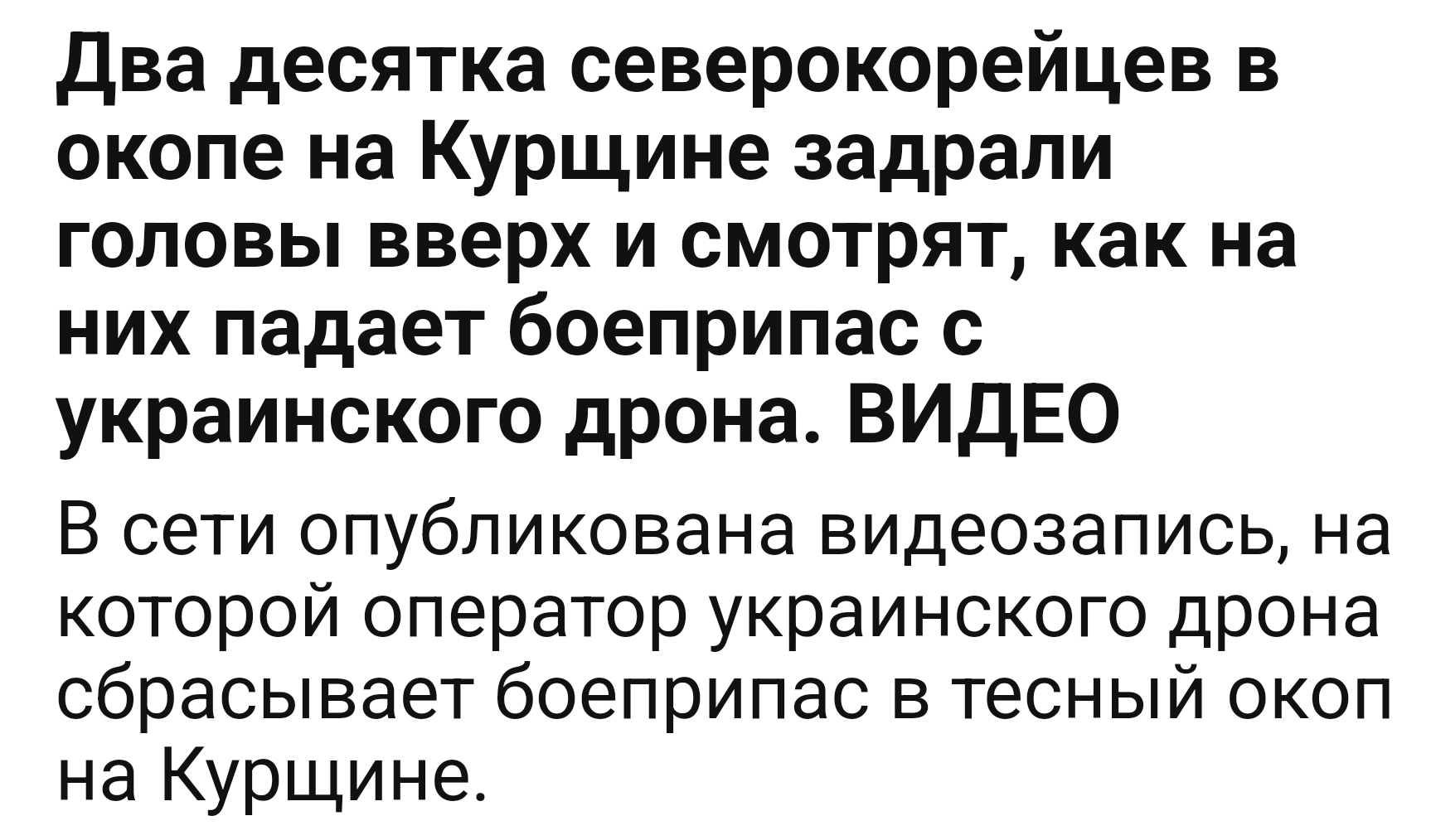 Северная Корея может оказаться решающим фактором. Им людей не жалко, а реальный опыт боевых действий в современных реалиях очень ценен. Посмотрим на реакцию Южной Кореи, там прекрасно понимают что участие севера значительно усиливает его военный потенциал.