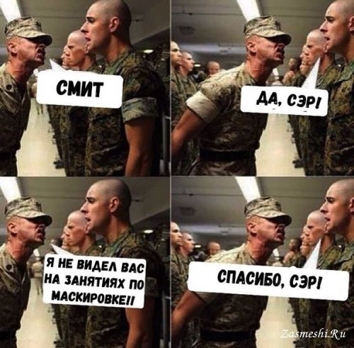 - Джонсон! Я не видел вас на занятиях по маскировке!