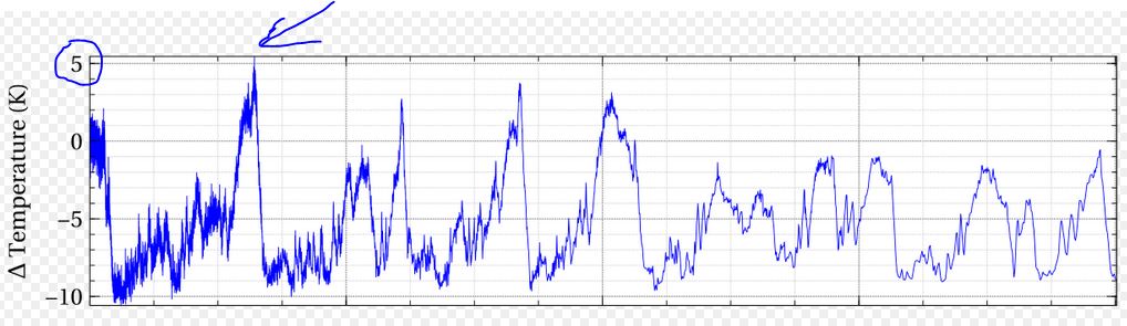 ты графики "кернов" внимательнее рассмотри. там пик (Eemian) высокий, но если провести горизонтальную линию (а не на глазок), то видно будет, что это меньше 3 градусов там.