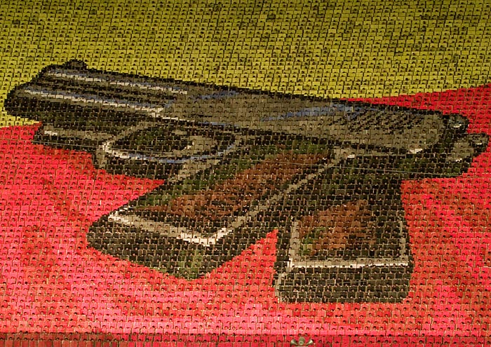 Эти люди своими телами изображали два пистолета.