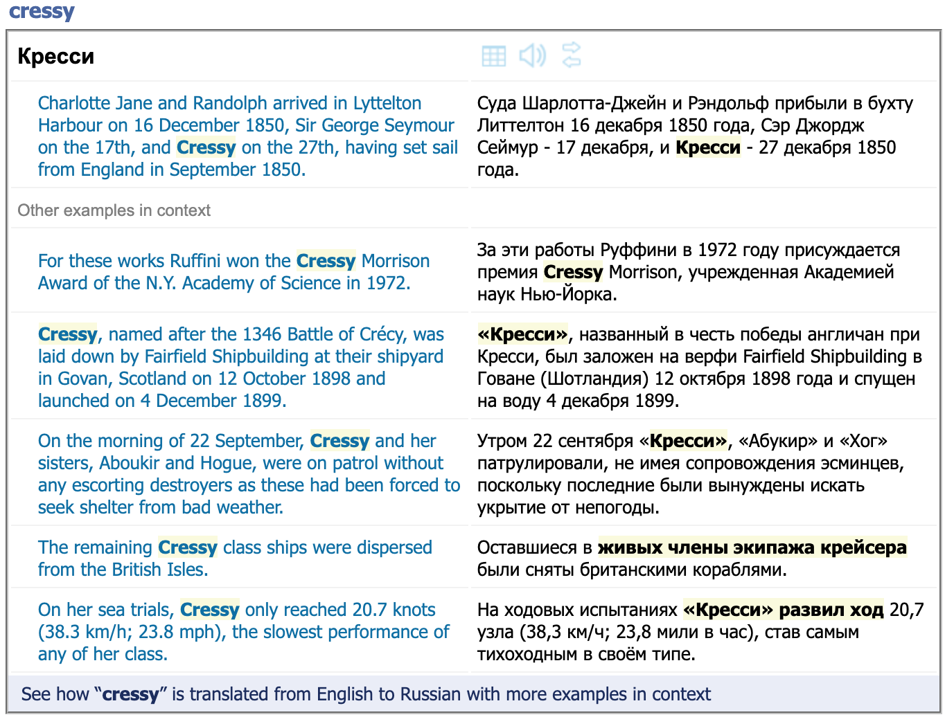 Там и перевод НИЧЕГО ОБЩЕГО с английским не имеет (какой в жопу экипаж? "Оставшиеся суда одного с Кресси типа разошлись с британских островов по миру"