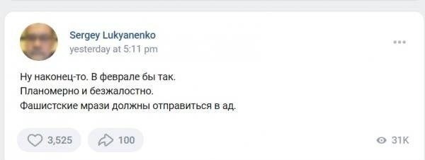 Хотя, я надеюсь, все эти "в труху" просто блеф, посыл Западу, вот мол, знайте, ежели Украина победит то...Мрази!