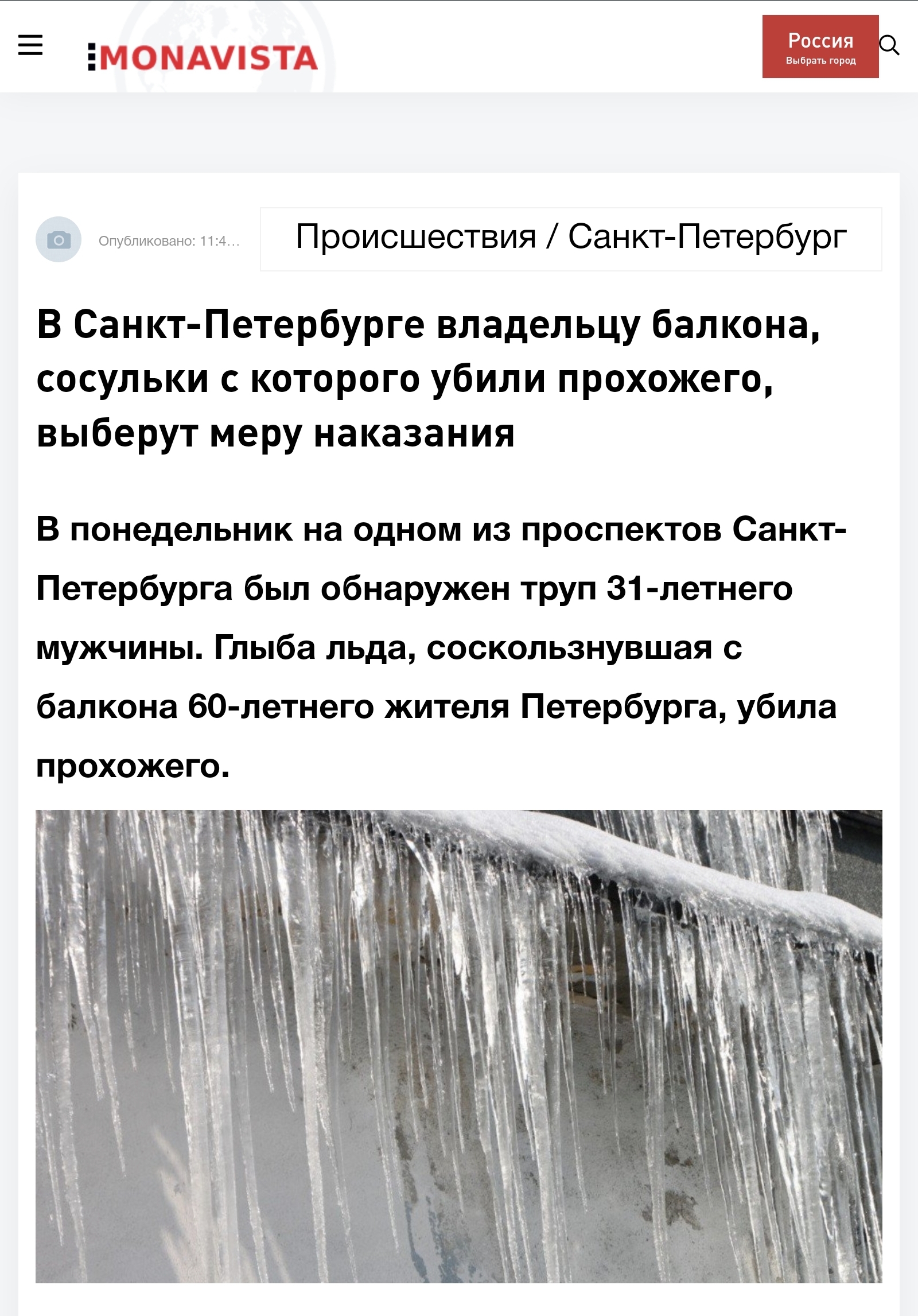 Накануне в подмосковных Люберцах глыба льда рухнула на очередь у военкомата