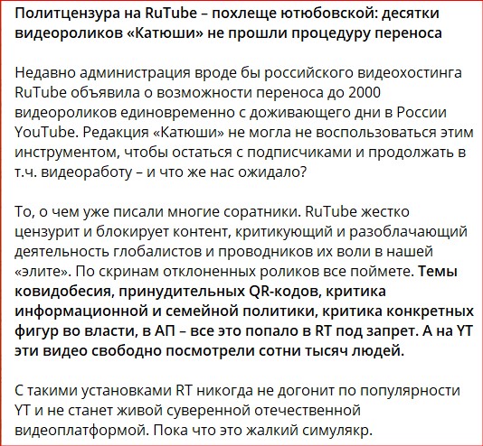 РИА «Катюша» (позиционирование: «патриотическое интернет СМИ») жалуется и скорбит по YouTube