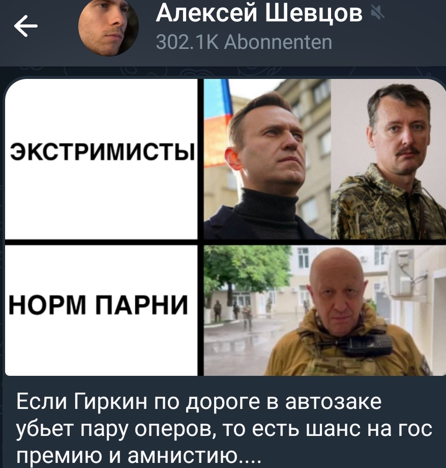 Но вот когда они пришли за военкорами и гиркинами - вот тогда я обрадовался и закричал: