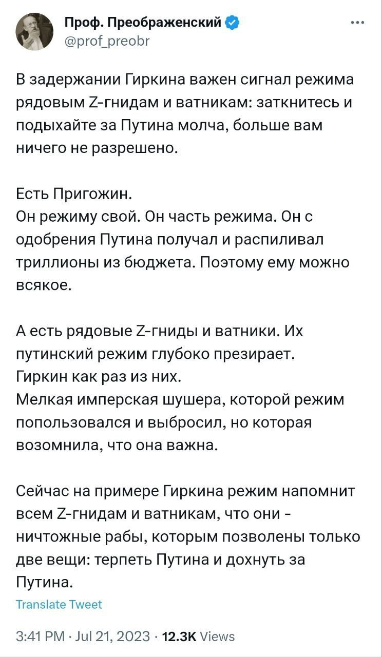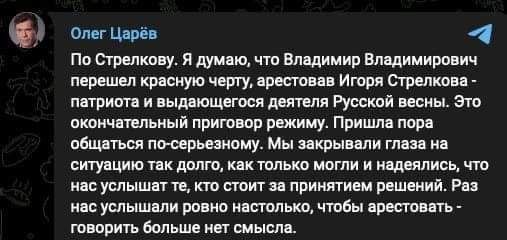 Если кому интересно, Гиркин 18 июля у себя в телеге написал следующее: