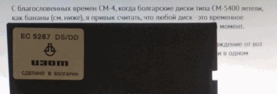 С благословенных времен СМ-4, когда болгарские диски типа СМ-5400 летели, как бананы (см. ниже), я привык считать, что любой диск - это временное хранилище данных, которое может внезапно исчезнуть в любой момент.