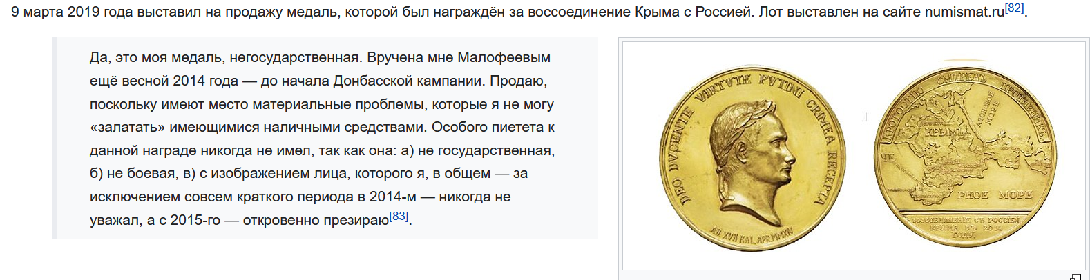 На скриншоте фрагмент из Вики, где он отзывается о путине.