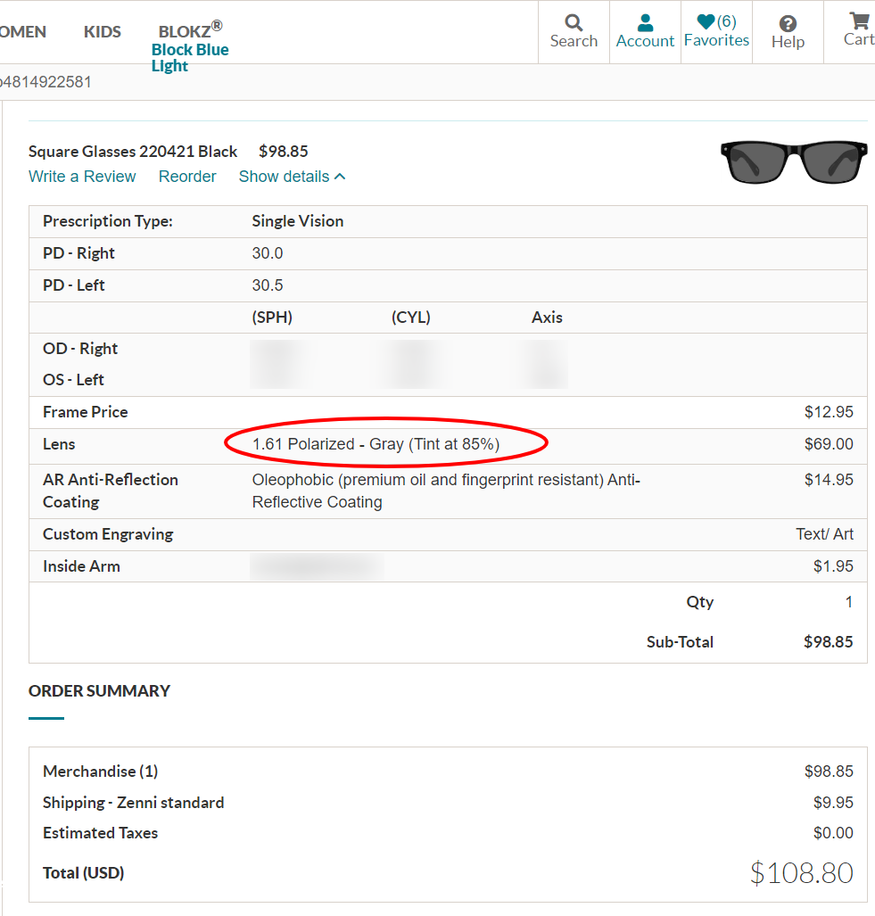 Из минусов - он рекомендуют при заказе нанести на линзы всякие защитные покрытия, так вот у меня примерно через год ношения покрытие начинает облезать, начиная с краёв. Правда, линзы были не самые дорогие — возможно, на более качественных такой проблемы нет. Ну и если менять очки ежегодно, то хрен с ним, с покрытием, полностью содраться не успеет