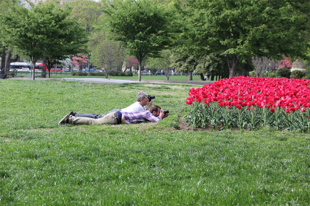Вокруг Капитолия в Вашингтоне DC - полно цветов. Поэтому фотографам есть чем заняться - фотографировать цветочки. Да и праздношатающимся туристам, вроде меня, также есть чем заняться: можно фотографировать фотографов, фотографирующих цветы. А потом пытаться произнести эту фразу скороговоркой.