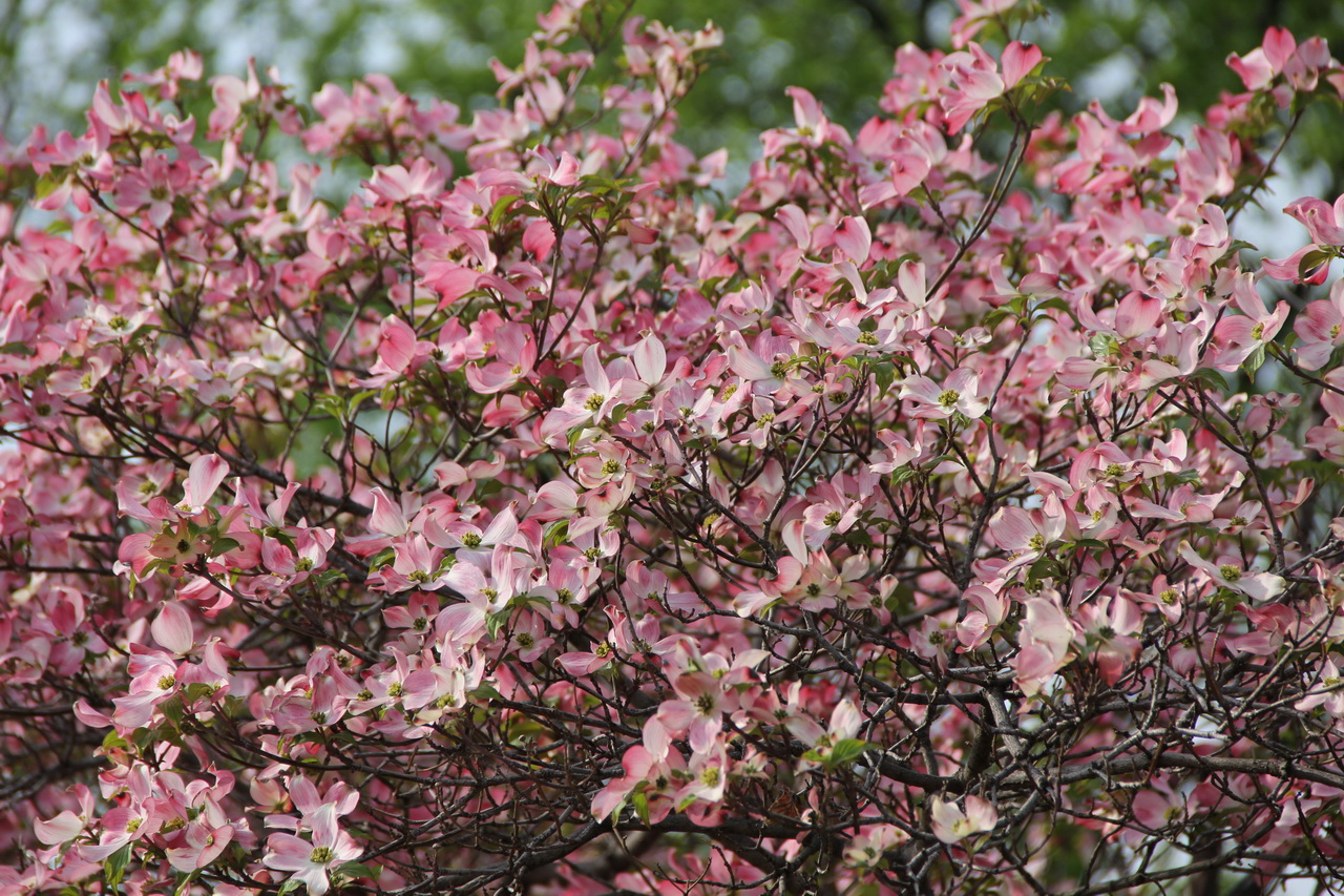 Я, конечно, не специалист, но сакура в Вашингтоне оцвела еще в самом начале апреля. На 3-й фотке тот самый догвуд, дерево на предпоследней - redbud. Про вторую фотку не скажу, название не знаю.