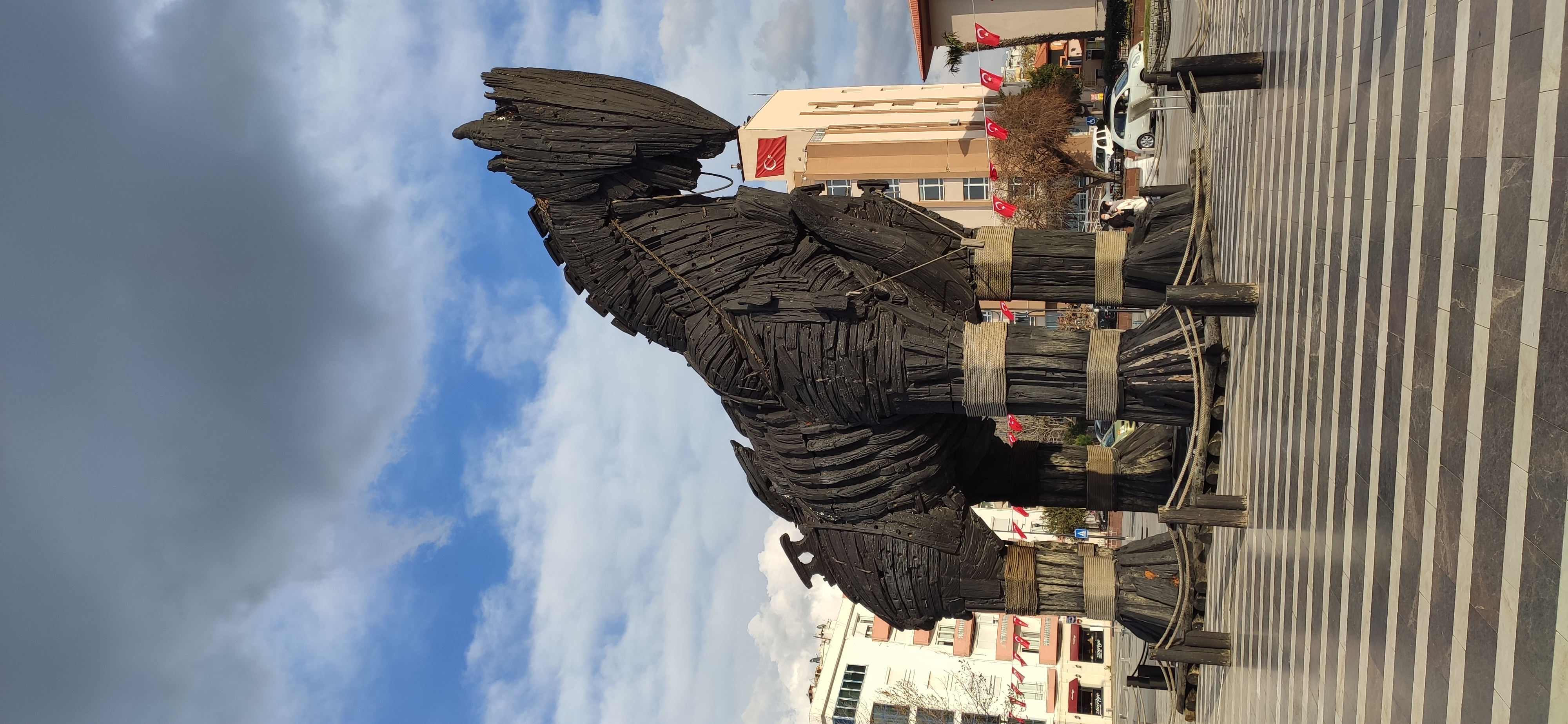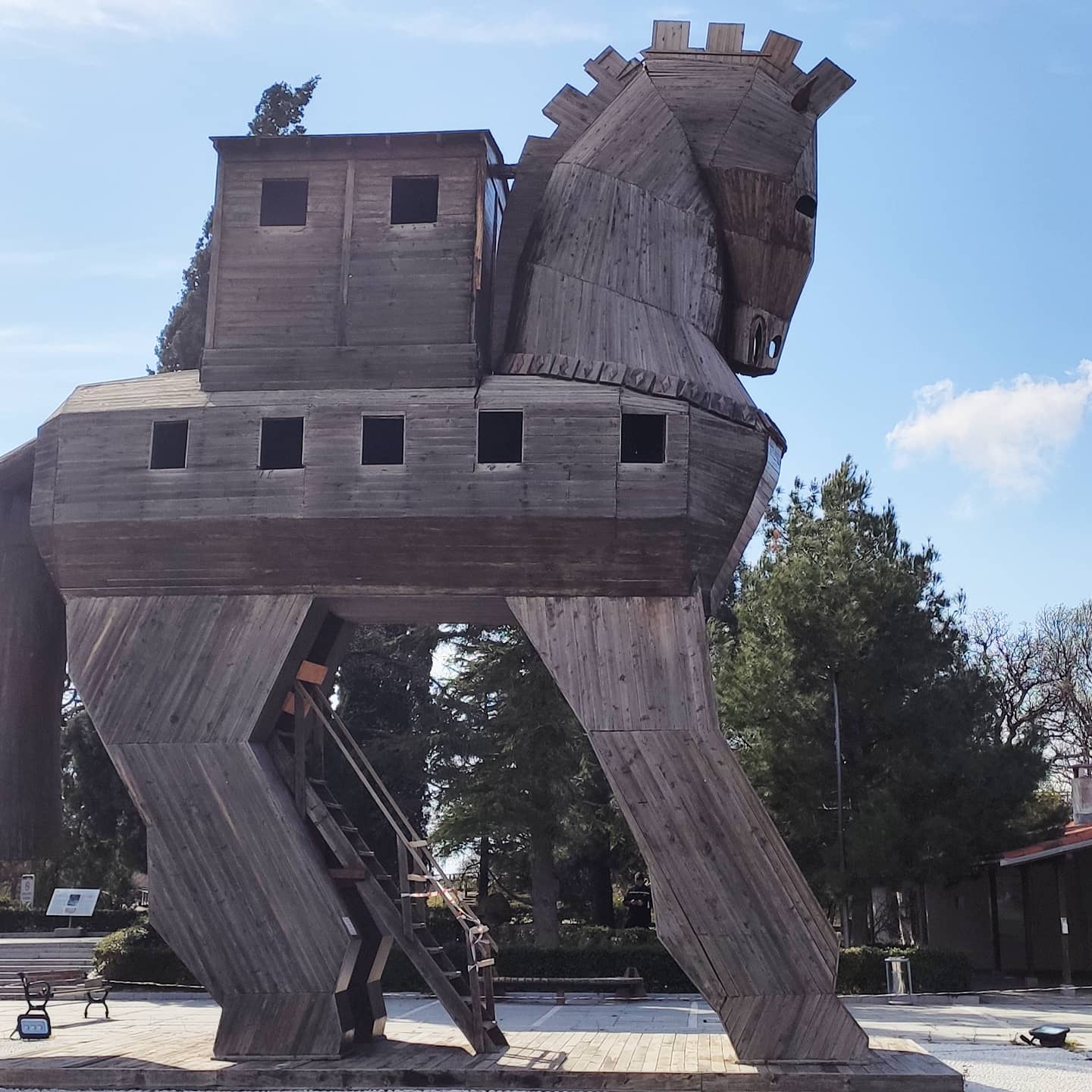 Возможно, что есть деревенный конь и у гостиницы в Анталии. Но конь на снимке стоит у входа в археологический заповедник/парк в Тевфикие, где раскопки Трои. Сам видел много лет назад. Есть и другая версия в Чанаккале