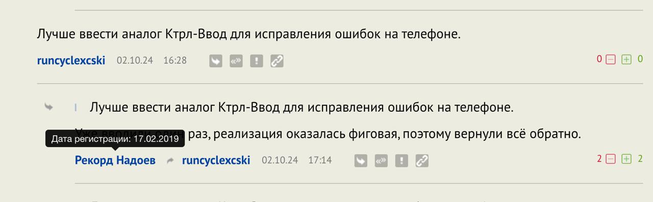 По поводу вот этой записи. Значок неофита убрали (над значком желтых штанов для заслуженных ветеранов думаем, слушаем ваши предложения), теперь по наведению мышки на ник появляется дата регистрации. На мобильнике мышку не наведешь, но можно просто ткнуть в ник - будет выведена открытая информация о нем с датой регистрации (это и раньше было доступно).