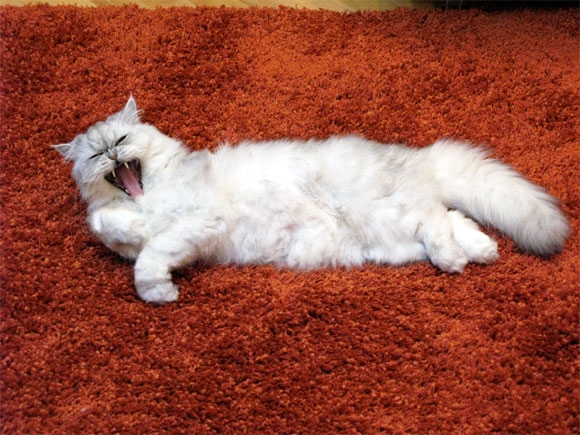 Когда коту Тоше хорошо - он ложится на ковер из красных червячков и спивае хорошую, добрую песню...