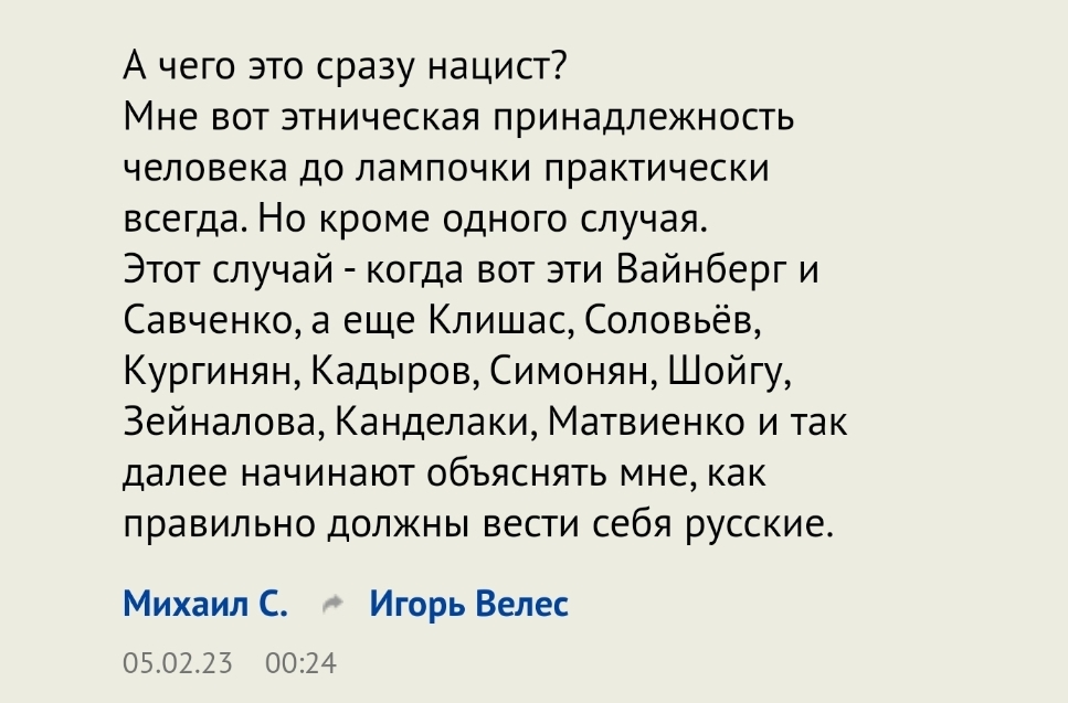 Если то же самое скажет какой-нибудь..."чистокровный" русский