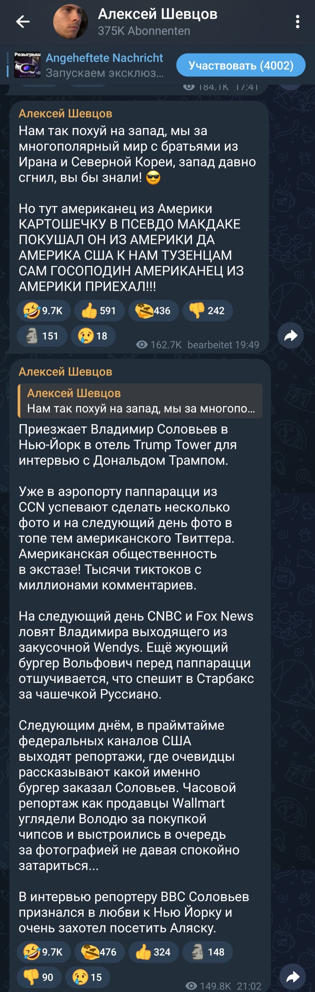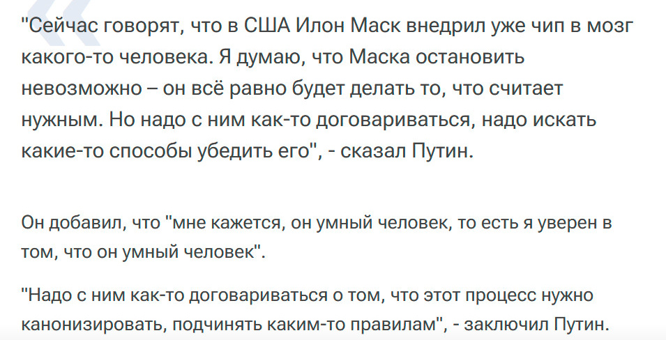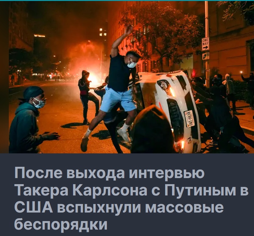 Но беда в том, что в интервью Карлсона Путин выглядел "якобы нормальным" для Запада. Это отмечают практически все. И именно в этом все обвиняют Карлсона (более чем справедливо обвиняют).