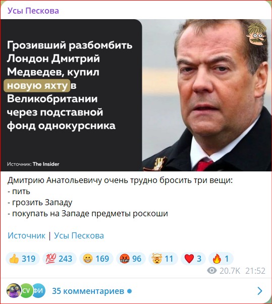 “Массированная атака ракетами «Орешник» будет сопоставима с применением ядерного оружия” - сказал кремлевский фюрер на заседании ОДКБ. Не знаю, как восприняли его слова присутствующие, но сказал полный антинаучный бред. Впрочем, для главы государства, где за идеологию отвечает Дугин, а за борьбу с геями - Володин, было бы странно по-другому.