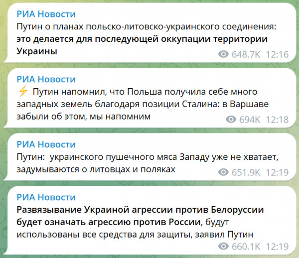 Похоже, в лечении старческой деменции Бункерного медики перешли на лошадиные дозы галоперидола. Дедок много всякого бреда нес, но тут что-то прям совершенно фееричное. Впрочем, он постоянно находится в обществе Патрушева и Ковальчуков, а вся эта троица - совершенно упоротая, насколько мы можем судить по их заявлениям, но Бункерный им уже прям совсем не уступает.