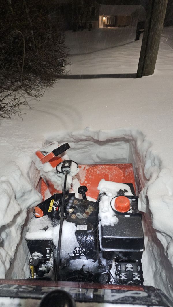 Этому сноублоуэру будет в обед 40 лет судя по серийнику. Я его купил лет 10 назад на гаражсэйле за помоему стольник , оттьюнил и всё хочу купить новый, но этот зараза всё не ломается. Arien 7hp, Tecumseh engine, 2 stage, бэнзин