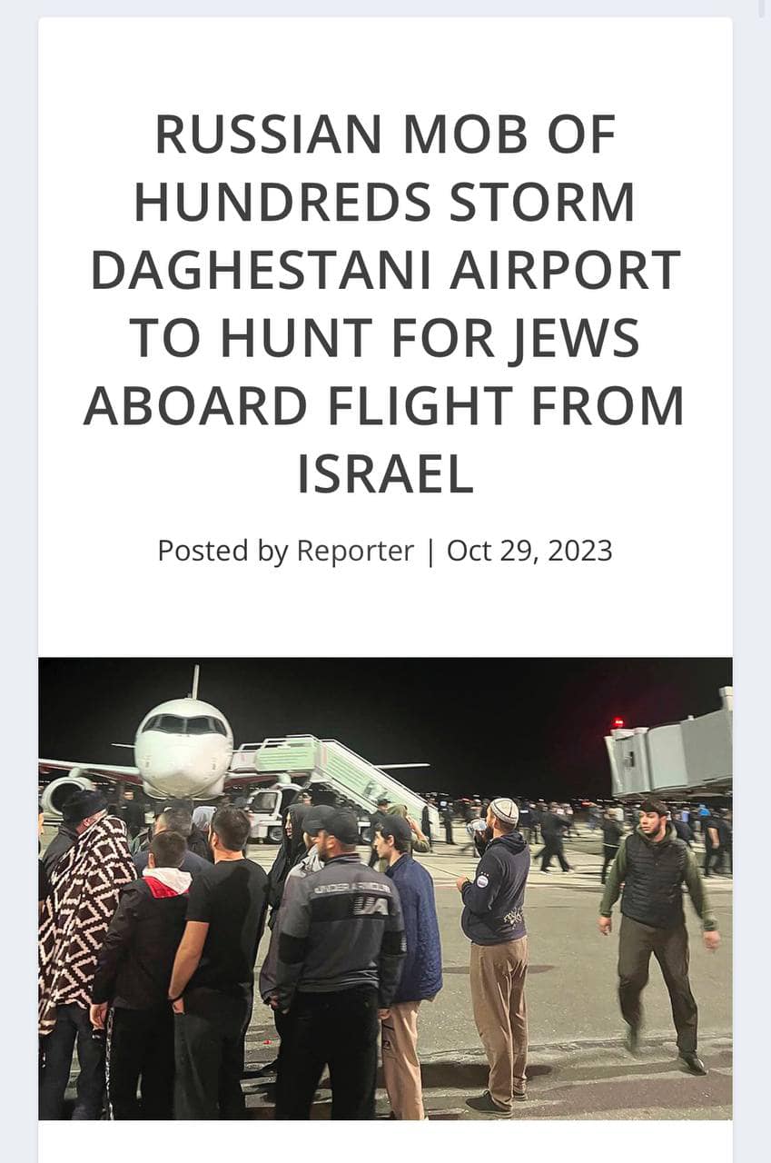 Но отмечу, что денацификация в Махачкале идет полным ходом, полиция проявляет благоразумие и сдержанность, аэропорт практически полностью захвачен неравнодушными гражданами, поиски явреев, посмевших проникнуть на территорию Дагестана (если они вообще осмелились) осуществляются повсеместно, турбины самолета также проверены все теми же гражданами.