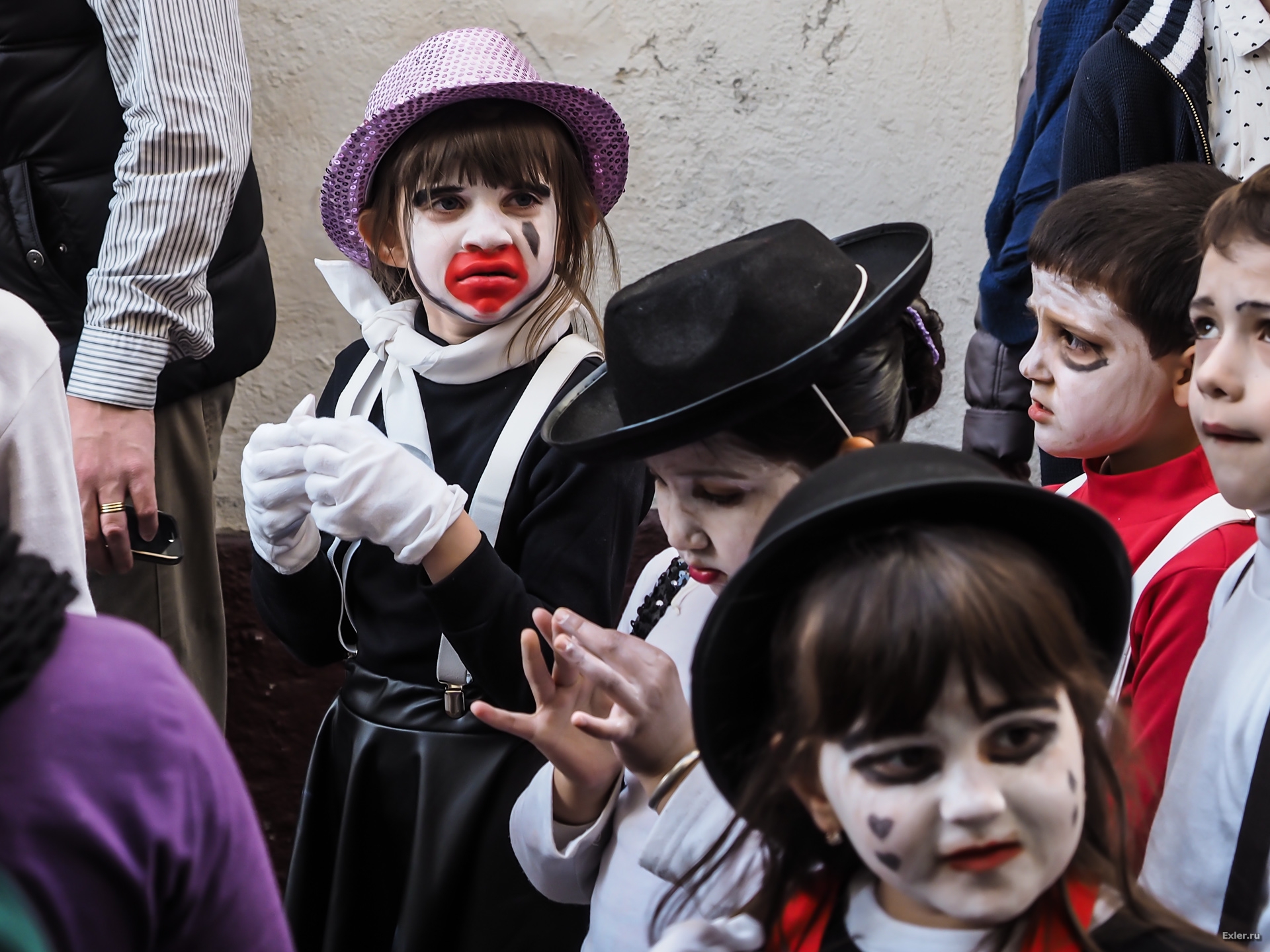 сопляки-инфантилы весёлые. а детишке постарше какие-то напряжённые и вроде даже испуганные почему-то.