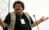 Есть стержень у мужика, высказывания собираются в цельную картину. Это не Лазарева, которая "вообще у меня все есть, но вдруг переклинило, как же там лес, как инвалиды и вот теперь я здесь, что мне делать, поддержите мою новую авторскую программу". Однако стержень у Быкова достаточно примитивен, основан на предположении о том, что все зависит от социальных взаимодействий - "в треугольнике Путин-Медведев-Лужков очков наберет Путин...". Подобная аналитика тоже есть возня в навозной куче, причем чистая и искренняя, не отягощенная никаким корыстным интересом. Что там показал первый канал, каким дерьмом ответил Караулов, что от этого будет и т.д. Быков сам же дал замечательный совет, существовать параллельно власти, но я бы расширил и посоветовал существовать еще и параллельно подобной аналитике. Сами обсуждаемые темы не имеют смысла, не несут никакой креатуры. А уж глобальный замах насчет целесообразности заселения земель русскими вообще на уровне иллюмжиновских инопланетян. Национальную риторику в подобных рассуждениях применять можно, а в учебнике ее использовать нельзя. Логика тут уже размывается – прилетело что-то чисто базарное, провокационное. Зато с точки зрения шоу и убивания времени – нормально, под водочку на кухне неплохо бы пошло