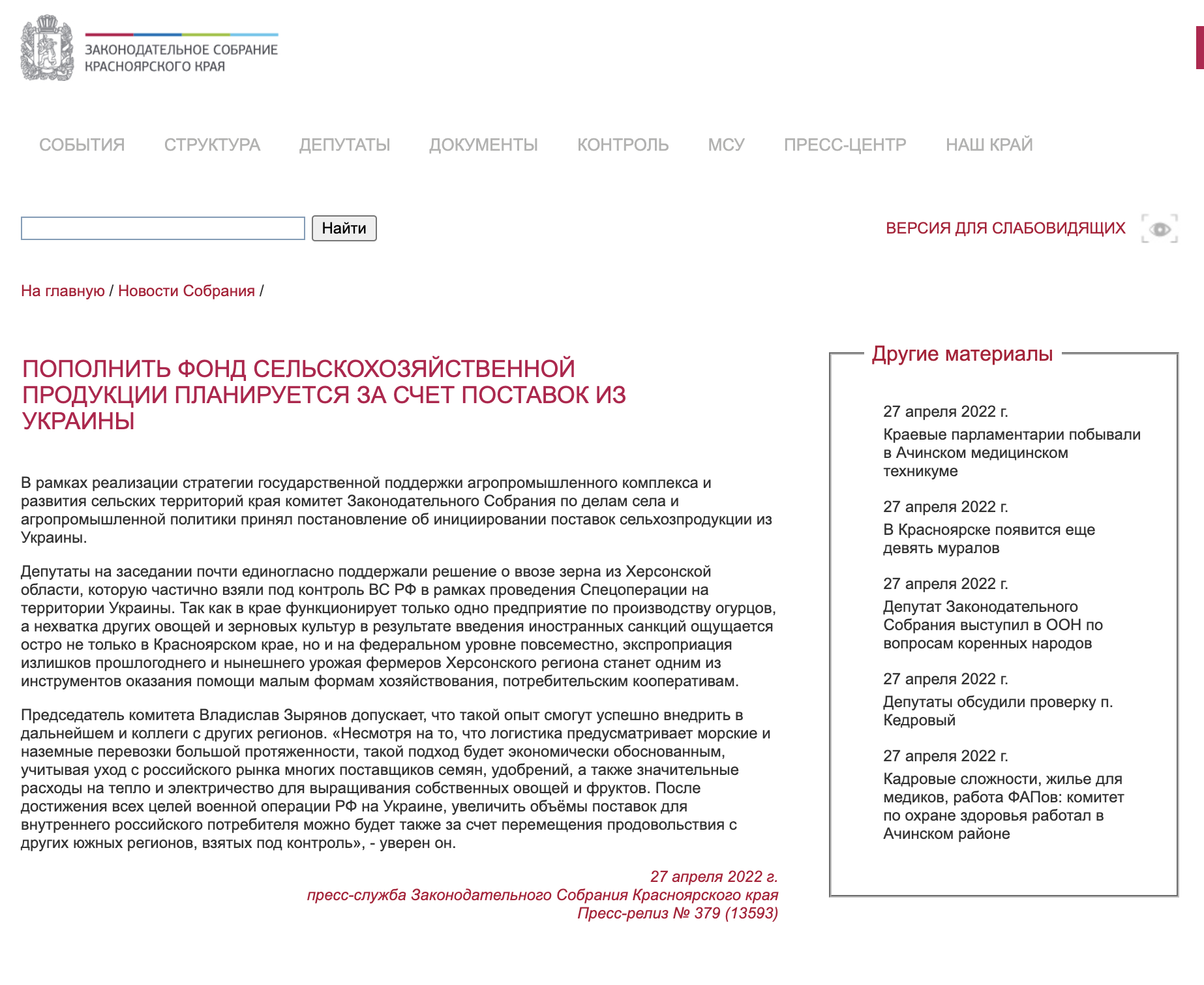экспроприация излишков прошлогоднего и нынешнего урожая фермеров Херсонского региона станет одним из инструментов оказания помощи малым формам хозяйствования, потребительским кооперативам