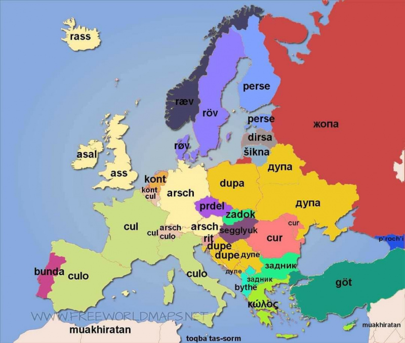 Просто для пытливых и любознательных. Как называется слово "жопа" в разных странах. Кстати, в Испании есть выражение "через жопу" - "por el culo".