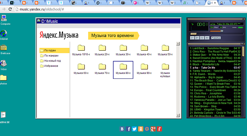 Мне нравилась страничка Яндекс-музыки, оформленная в стиле Win95.