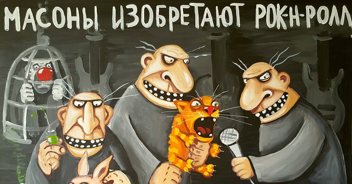 кстати масон держит кота вполне бережно, не за яйца. Так что кот сам поет. Мелодист, наверное.