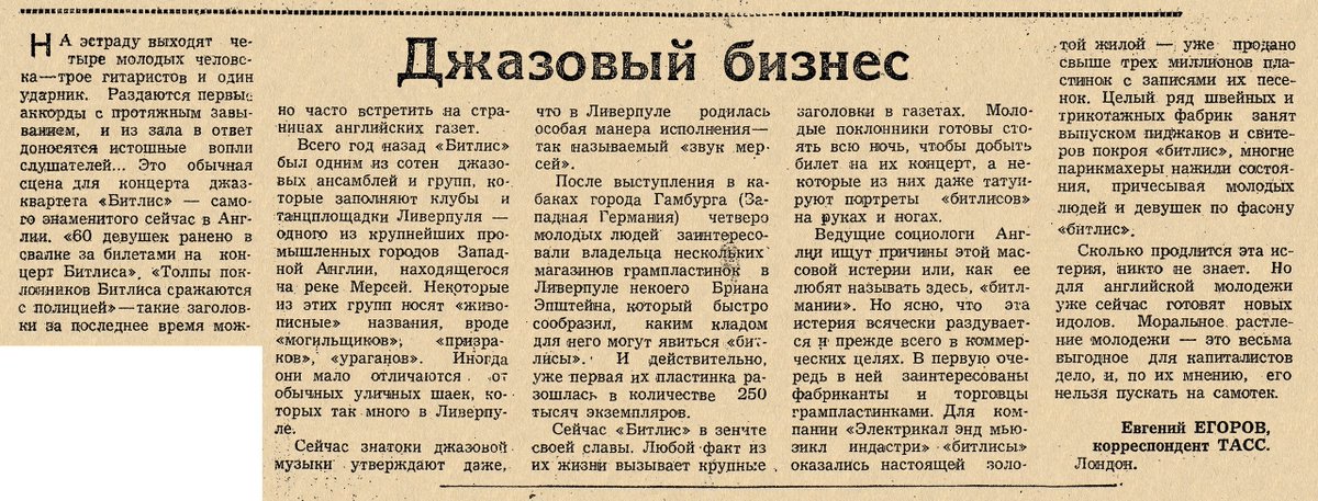 Кстати, западная пресса весьма негативно оценивала раннюю битломанию. Сам об этом читал в автобиографических книгах.