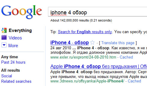 Вот Гугл вроде любит, а все равно подло советует "Search for English results only" 😄