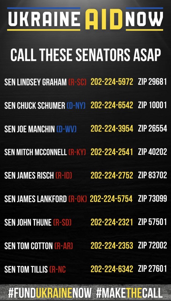 Украине нужна помощь. Американцы - звоните по номерам с картинки. Сделайте эти телефоны красными от нагрузки. Не говорите республиканским сенаторам что они одноклеточные и не понимают опасности ситуации (хоть это так и есть). Напирайте на то, что Ким со своими ракетами для Путлера просто подтёрся Америкой как империей и нужно как минимум немедленно передать Украине списываемые ракеты ATACMS. Как минимум из принципа. Может сработать для старперов, когда то известных как ястребы, типа Грэма.
