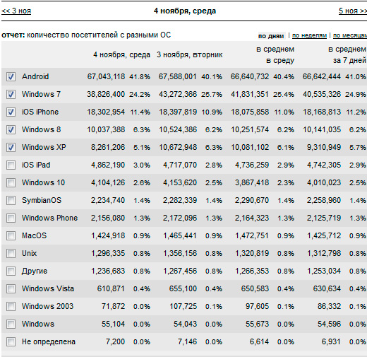 А по поводу iOS - это российская статистика, в мире вроде процент айфонов значительно повыше, хотя от Андроид уже даже в Америке отстали, да.