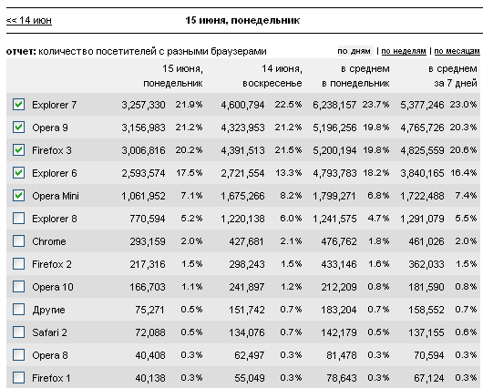 – Чья браузерная статистика, на ваш взгляд, наиболее верна? Net Applications, Liveinternet (для России), другие службы мониторинга?