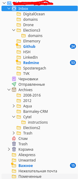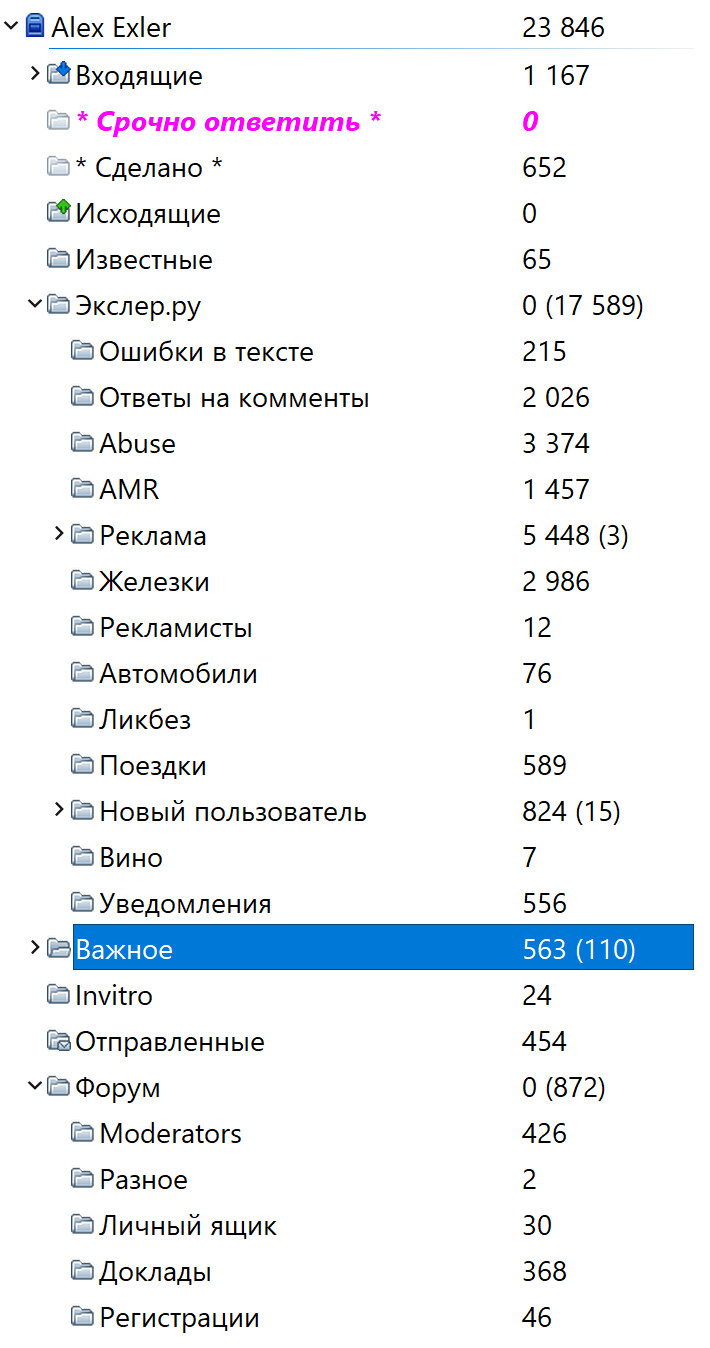 Ищу я сейчас в аутлуке внутри цепочки или в гмыле по подпапкам, для чего сначала разбрасываю по ним разные отправления.