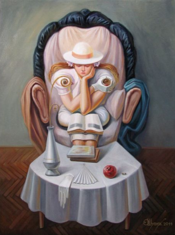 Украинский художник Олег Щупляк (его персональный сайт, его Facebook) пишет картины в различных жанрах: от традиционной живописи до сюрреализма и абстракционизма. Одно из направлений его творчества - "картины с двойным смыслом". Они очень интересные - вот несколько работ из галереи на его сайте. По-моему, здорово.