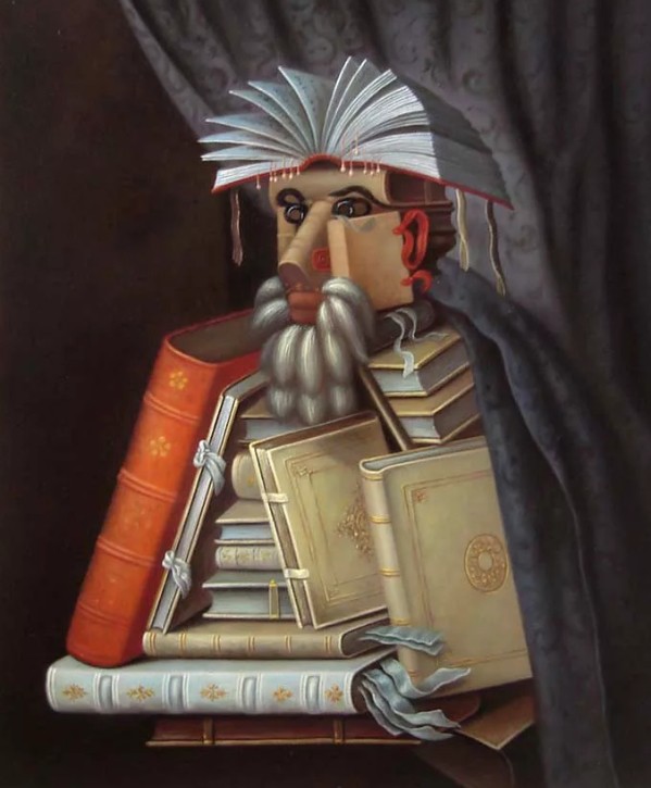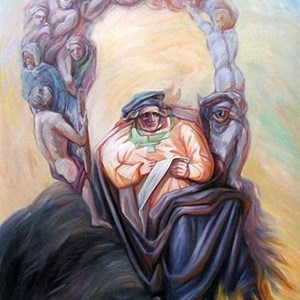 У него есть в этом ключе очень здоровская подсерия "портреты на основе связанной с персонажем известной картины, либо о нём, либо его авторства'