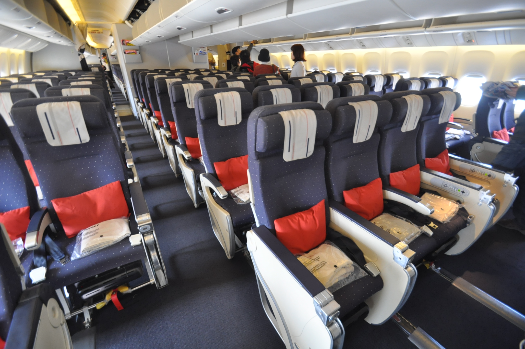 Пардон, а где существуют самолеты, где над средним рядом нет багажных полок? Вот салон эконом-класса 777-го — куда там второй ярус кресел влезет?