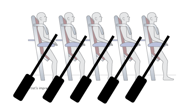 Убрать вообще эти кресла и подвесить к потолку гамаки. Дёшево, почти ничего не весят, и даже заставлять пристёгиваться не надо - защёлкнул пассажира и вперёд!