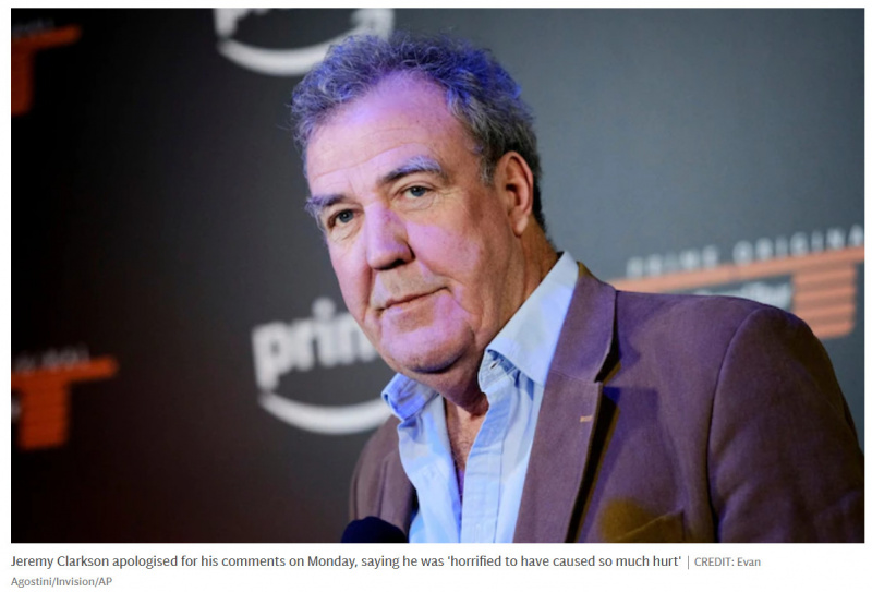 После выхода в The Sun очень энергичной колонки Джереми Кларксона по поводу Меган Маркл (каковую колонку он через день-два удалил, когда поднялся ожидаемый скандал), неравнодушные граждане начали активно стучать в Скотланд-Ярд, требуя, чтобы Кларксона посадили, колесовали, четвертовали или голого провели по улицам каждого города Британии, чтобы толпа скандировала "Позор" и кидала в него комьями экскрементов.