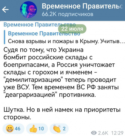 Как выяснилось, террористические акты готовились в одном из агропредприятий Одесской области. В этой подготовке участвовали 100 тонн гороха и 20 тонн ячменя, которые и были благополучно уничтожены "Калибрами".