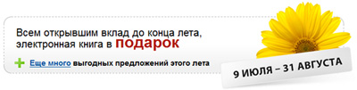 Наткнулся в Сети на баннерочек одного банка, который рекламирует акцию: всем, открывшим вклад в течение августа, в подарок - электронная книга. Ну, думаю, ридеры-то сейчас уже реально дешевые, вклад там минимально - 100 тысяч рублей, - так что уж могут расщедриться на какую-нибудь читалку долларов за сто. Но интересно было посмотреть, пишут ли, какую именно модель они собираются дарить.