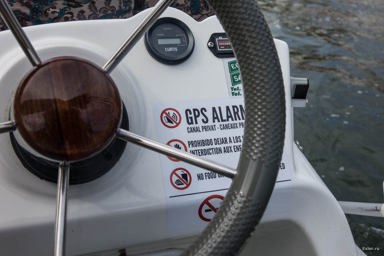 Плавать можно только по двум центральным каналам, а боковые - это типа приватные, туда заплывать нельзя. Причем за этим следят: в лодке стоит GPS, и если она заплывает в боковой канал - начинает завывать негромкая, но противная сирена.