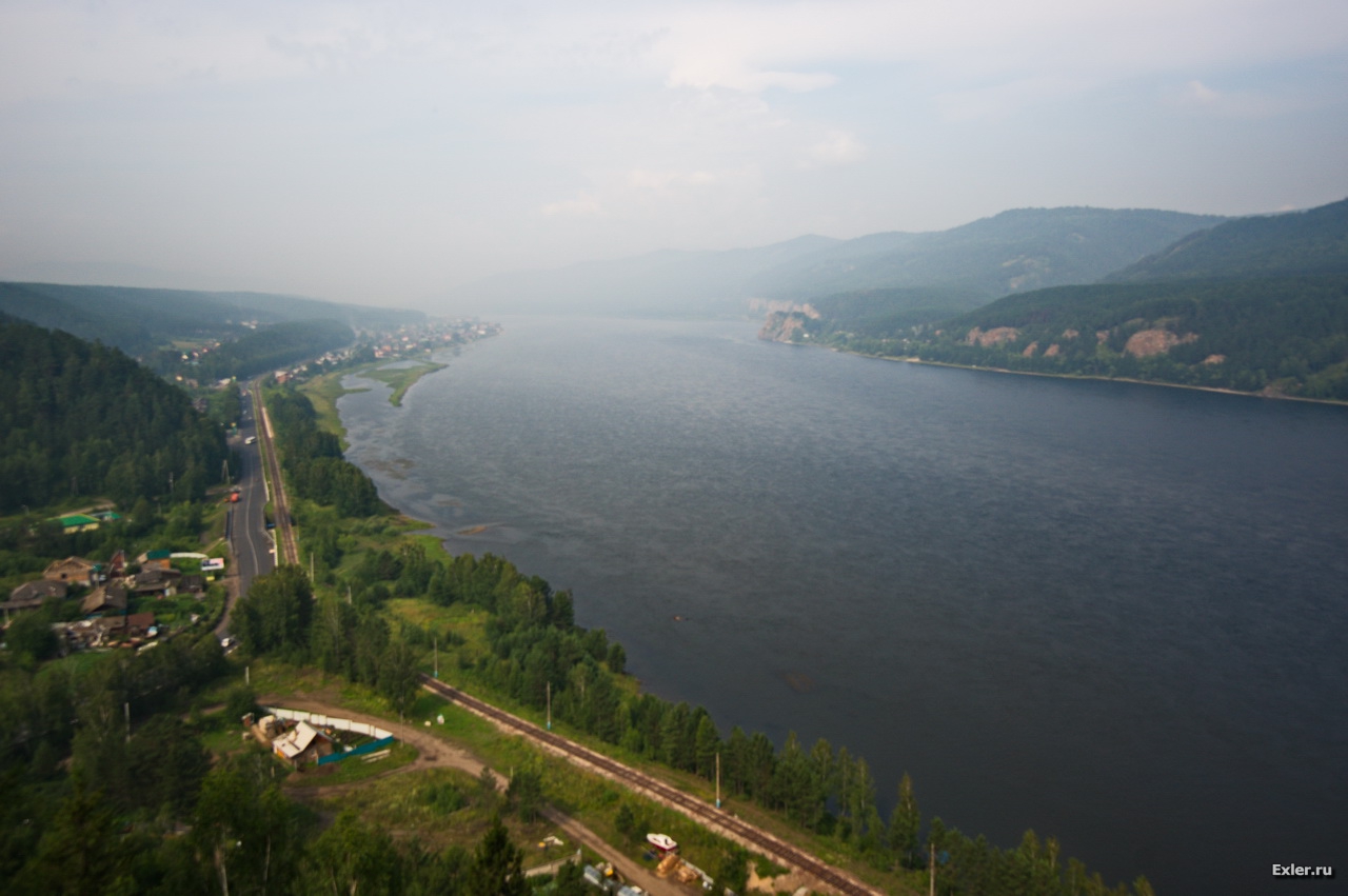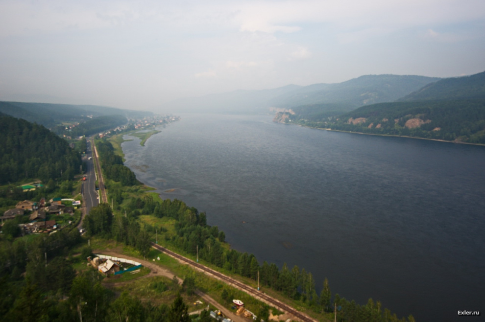 Смотровая площадка "Царь-рыба" на Слизневском утесе близ деревни Овсянка, родины писателя Виктора Астафьева. Площадка представляет собой балкон на отвесной скале, к которому ведет дорожка от автомобильной стоянки.