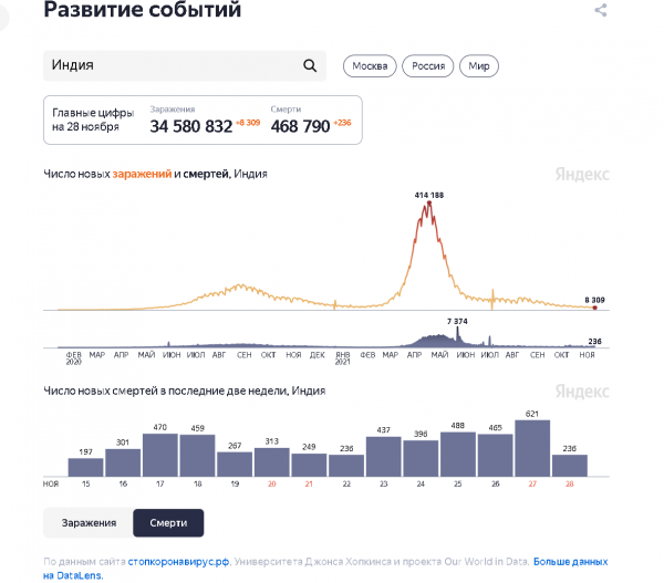 Интересные данные о том, как изменилась эпидемическая ситуация в Каталонии за год по данным одной из недель ноября: с одной стороны, число заразившихся за неделю почти такое же, как и год назад, однако смертей в 10 раз меньше, тяжёлых случаев - более чем втрое меньше, а число людей, прошедших через больницы - более чем вдвое меньше. (Отсюда.)