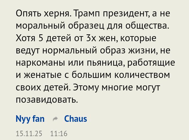 Чорт! Мы же все забыли, что Трамп - это агент Краснов. Так что, начальник сорвал звёздочку с погон? Сказал, что тринадцатой зарплаты не будет? Поругал за ложную инфу?