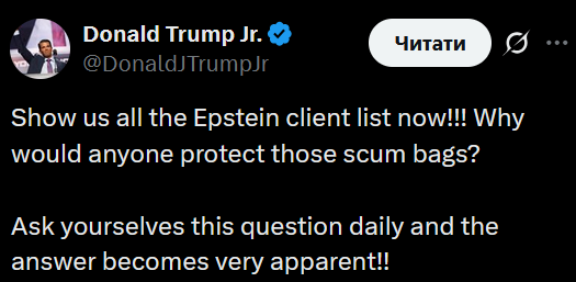 А правда в том, что как апологеты Трампа, так и его противников в деле Эпштейна жрут говно из одного корыта.